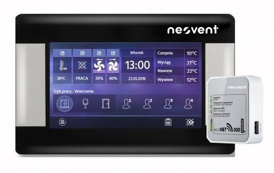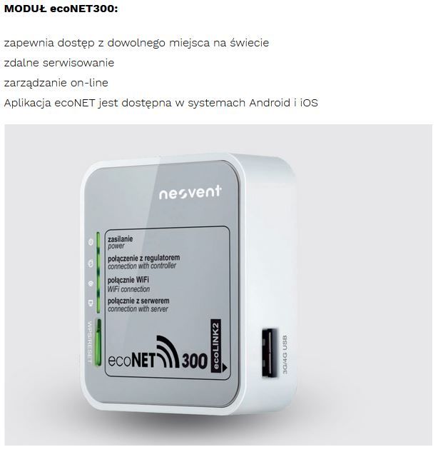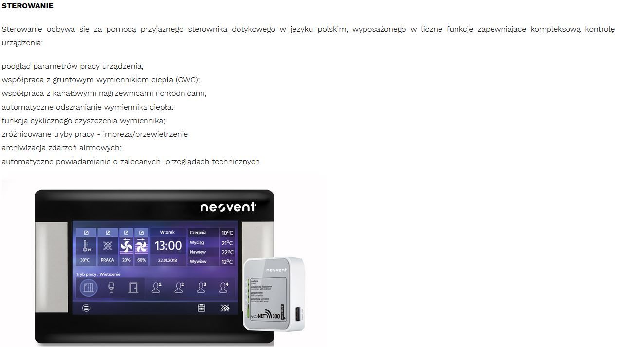 - Nagrzewnica wstępna: wbudowana, 1000 W, zasilana ze sterownika centrali