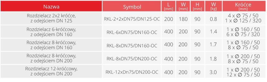 Rozdzielacz RKL 2x2 króćce z odejściem DN125